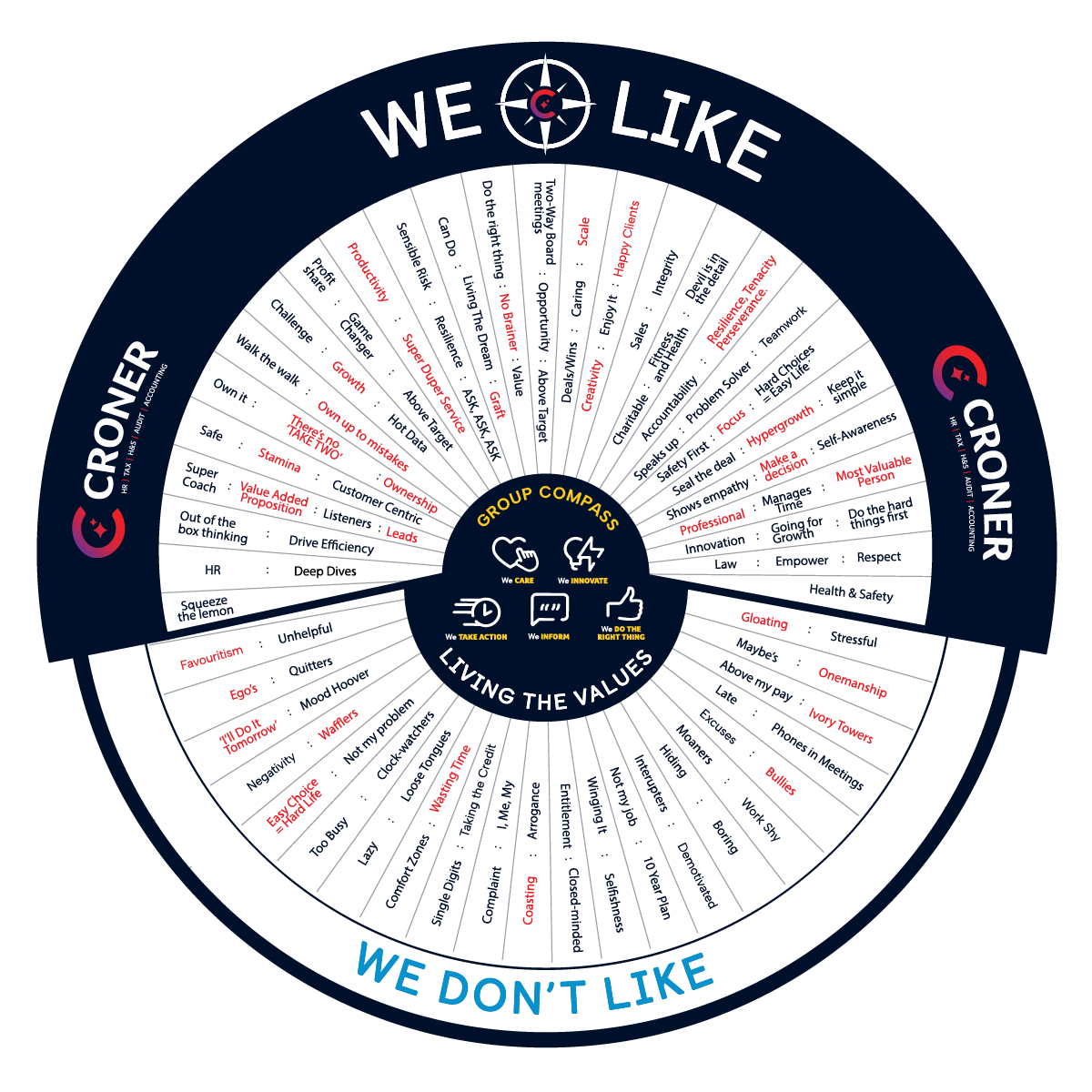 A compass provides a sense of comfort and safety, provides assurances and points you in the right direction. At Croner, we know what we like and what we don’t. 40 years ago, Peter Done, CEO and Founder, built a business on a “can-do” attitude. Today, we’re a market leader around the world growing exponentially year after year with this belief firmly engrained in our people. Our compass helps us hire, retain and progress as a culture. At the heart of our success is our people and with our compass we continue to be guided in direction of growth.